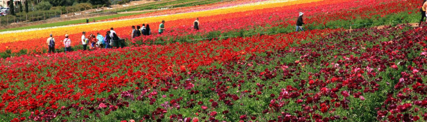 Each spring, 50 acres of hillside overlooking the Pacific Ocean in Carlsbad are washed in the brilliant colors of thousands of Tecolote® Giant Ranunculus flowers. Typically, the bloom season is early March through early May, but that can vary based on weather patterns each year. The 2016 bloom season opens 1 March.