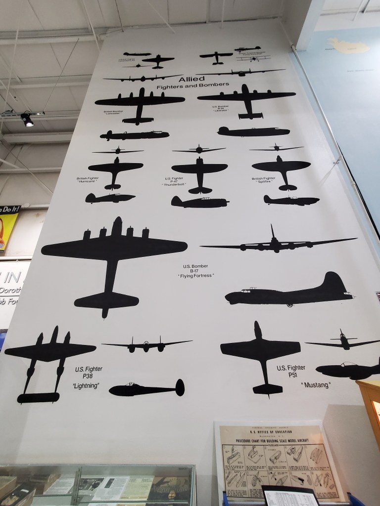 There’s a ton of history to be had through the detailed interpretive displays and videos. There was a section dedicated strictly to the women of aviation history which was enlightening. You’ll see displays of uniforms, actual medal citations, and other aviation-related memorabilia. You can actually enter some of the aircraft (a $5 fee to enter the B-17). A well-stocked gift shop at the entrance will allow you to purchase aviation related items to take home.