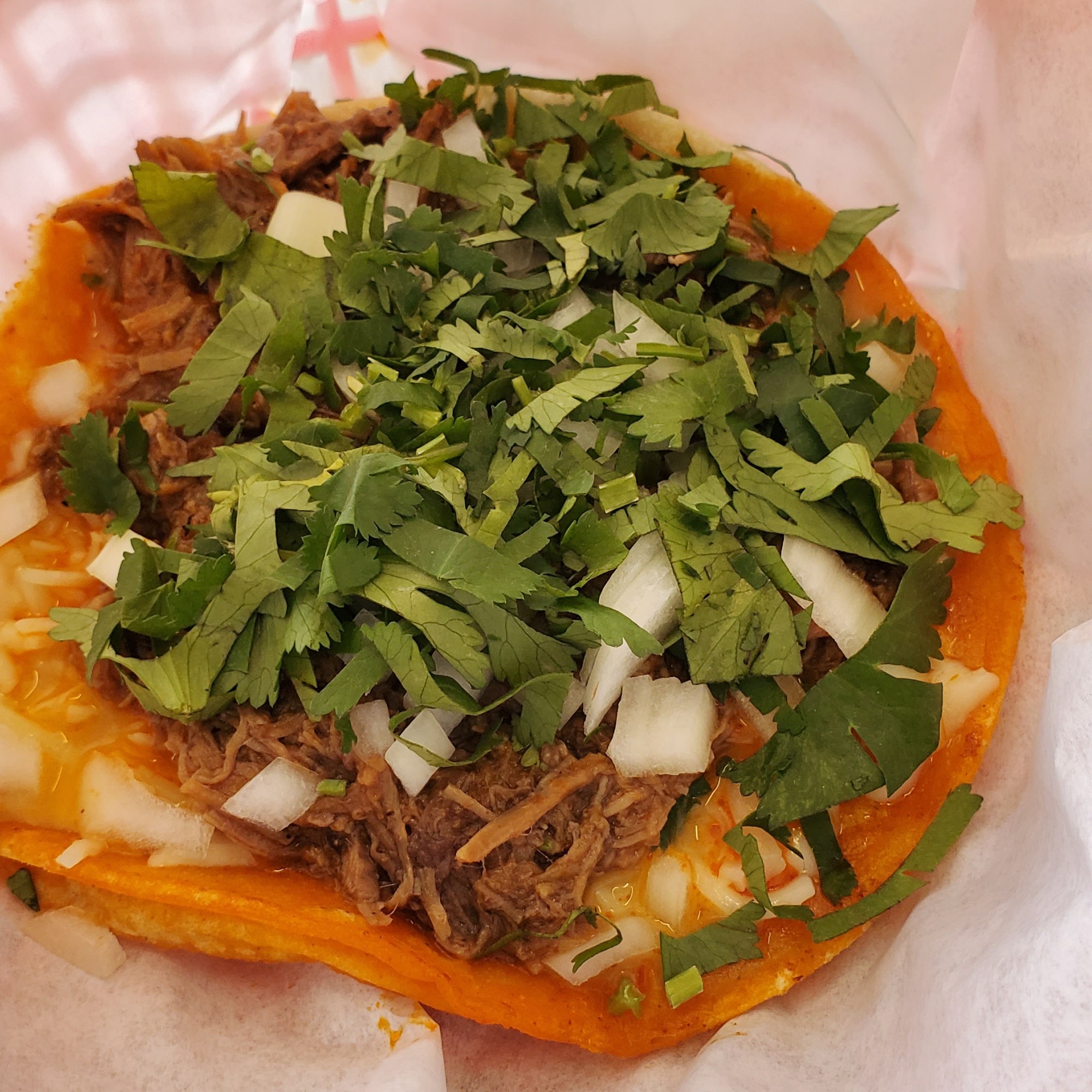 It was so flavorful—the meat was really tender, there was just enough spice, and the cheese formed long strings as you took a bite. In fact, it was so good, I ordered a second one even though I wasn’t all that hungry. Both had generous servings of birria on them, but the second one seemed to have just a tad more and, by the time I finished it, I was full.