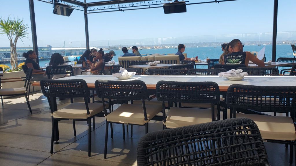 A friend and I visited for lunch at noon on a Thursday, and there was plenty of seating available. We were even surprised by the amount of metered parking available along Harbor Drive at that time of day.